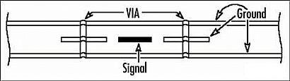 - 信號線應就近在過孔旁放置接地過孔