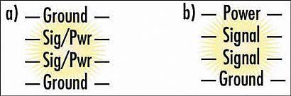 第一種為首選方案,PCB的外層均為地層,中間兩層均為信號/電源層。信號層上的電源用寬線走線,這可使電源電流的路徑阻抗低,且信號微帶路徑的阻抗也低。從EMI控製的角度看,這是現有的最佳4層PCB結構。