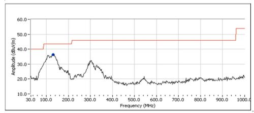 圖2.LM48310的EMI測試結果符合FCCB級限製水平。
