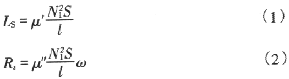 通過上式把磁學參數與電學參數直接聯係起來。它表示磁性材料的磁性參數在電路中充當的角色。式(1)表述電路中的電感直接與磁材料的彈性磁導率μ′有關,表示器件的儲能大小與頻率無關的純電感性。而電路中電阻R與磁性材料複數磁導率的虛數部分μ″有關。式(2)則既與材料的渦流損耗、磁滯損耗及剩餘損耗等有關,並且與頻率也有關。反映在電學上就相當於等效電阻R。