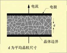 壓敏電阻本身的切換電壓取決於電極間平均晶粒的數目。