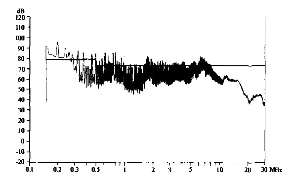 圖1未加任何抑製措施所測得的傳導騷擾