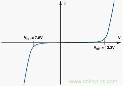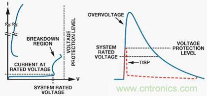 TVS是基於矽的器件。在正常工作條件下,TVS具有很高的對地阻抗;理想情況下它是開路。保護方法是將瞬態導致的過壓箝位到電壓限值。這是通過PN結的低阻抗雪崩擊穿實現的。當產生大於TVS的擊穿電壓的瞬態電壓時,TVS會將瞬態箝位到小於保護器件的擊穿電壓的預定水平。瞬變立即受到箝位(< 1 ns),瞬態電流從受保護器件轉移至地。