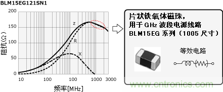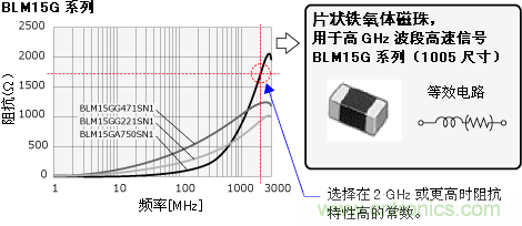 此時,請選擇GHz波段阻抗高的BLM-H係列 (抑製GHz波段噪聲) 或BLM-G係列 (抑製高GHz波段噪聲) 的鐵氧體磁珠。