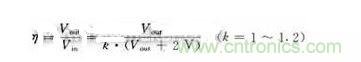 效率分析當輸入電壓範圍為220 V±10%時,整流濾波後的電壓為Vin±10%。串聯型穩壓電路要求Vin-10%-Vout>dV。dV為輸入輸出最小壓差,對雙極型調整管,dV>2 V。效率: