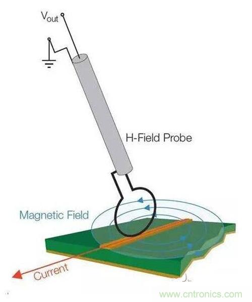 圖8:將H場探針與電流流向保持一致可以使磁場線直接穿過環路。
