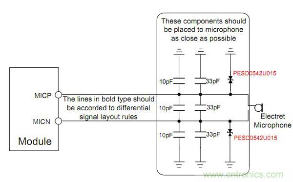Microphone和揚聲器的應用類似,采用PESD0542U015