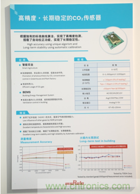 在傳感器方麵,村田推出了剛剛在2017年9月份開始量產的高精度·長期穩定的CO2傳(chuan)感(gan)器(qi)。據(ju)了(le)解(jie),該(gai)產(chan)品(pin)根(gen)據(ju)村(cun)田(tian)獨(du)有(you)的(de)標(biao)準(zhun)曲(qu)線(xian)算(suan)法(fa),實(shi)現(xian)了(le)高(gao)精(jing)度(du)檢(jian)測(ce),並(bing)搭(da)載(zai)了(le)自(zi)動(dong)校(xiao)正(zheng)功(gong)能(neng),確(que)保(bao)了(le)長(chang)期(qi)穩(wen)定(ding)性(xing),可(ke)以(yi)應(ying)用(yong)於(yu)智(zhi)能(neng)農(nong)業(ye)和(he)BEMS(Building Energy Management System)。在植物園、農業園裏安裝了該產品後,可以精準檢測出園內CO2濃度,促進光合作用,有效利用CO2。該產品安裝在大樓空調係統用通風管後,能夠實時檢測大樓內CO2的濃度,隻在必要時開啟新風係統進行換氣,從而對大樓整體節能做出貢獻,起到能源管理的作用。