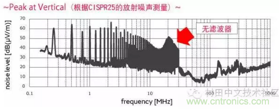 通過追加DLW43SH係列或DLW32SH係列,來確認獲得的噪聲抑製效果。
