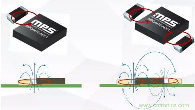 如圖7所示,對稱電容設計能明顯抵消磁場,如果電容集成到芯片內部的話對傳導和輻射的高頻幹擾都能起到極大的抑製作用,MPS的MPQ4491M就是一款高度集成的車載充電芯片方案,內部集成了電容,具有良好的EMI性能。
