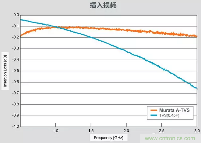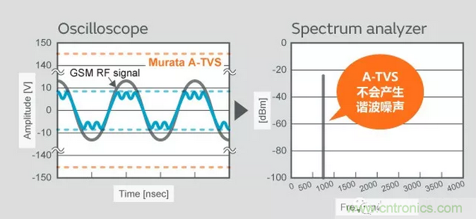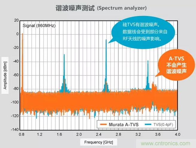 因此,不會產生諧波噪聲的村田的A-TVS(LXES**A係列)可以說更加適用於RF天線的ESD保護方案。
