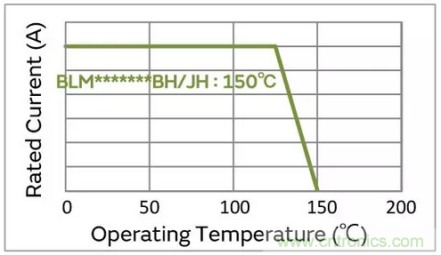 2) 通過保證150℃的片狀鐵氧體磁珠的額定電流降額