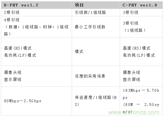 D-PHY之後還製定出了M-PHY規格,C-PHY介於D-PHY和M-PHY之間成了標準規格。