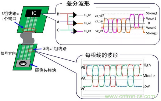 一般差分傳輸線D-PHY的1組線路由2根引線構成,C-PHY則是1組線程則由3根引線構成的複雜的差分傳輸線。