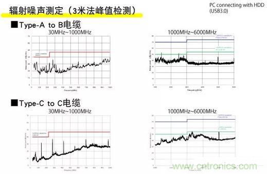 雖然這裏使用TypeA-TypeB和TypeC-TypeC作為連接電纜,但兩種噪聲水平都低於不必要的輻射噪聲的調節值,並且沒有出現問題。