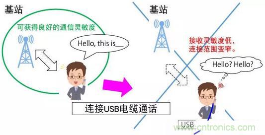 通常,對於從數字基板直接進入天線的噪聲會有相應的對策,但是由於智能手機中連接了USB等接口電纜,該電纜成為了放射源,導致進入天線的噪聲增加從而使接收靈敏度降低。