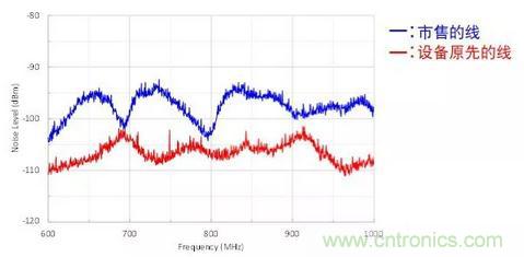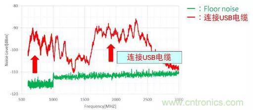 圖3:連接USB電纜前後進入天線的噪聲的對比