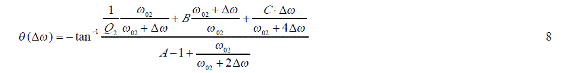 如果實際工作角頻率與待測諧振角頻率間的角頻率差 Δω控製在遠小於 ω02,這樣可以無視 Δω的高次項,式5可以作進一步簡化。