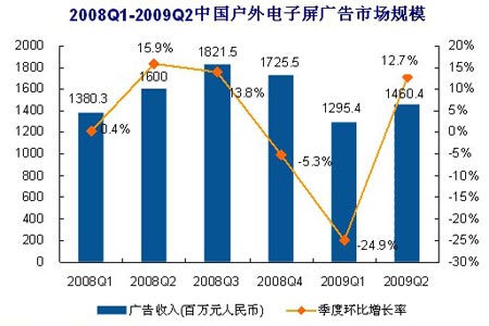 易(yi)觀(guan)國(guo)際(ji)分(fen)析(xi)認(ren)為(wei),由(you)於(yu)部(bu)分(fen)細(xi)分(fen)市(shi)場(chang)尚(shang)未(wei)走(zou)出(chu)宏(hong)觀(guan)經(jing)濟(ji)下(xia)滑(hua)的(de)困(kun)境(jing),加(jia)上(shang)整(zheng)體(ti)市(shi)場(chang)的(de)反(fan)彈(dan)並(bing)不(bu)強(qiang)勁(jin),因(yin)此(ci)本(ben)季(ji)度(du)整(zheng)體(ti)市(shi)場(chang)規(gui)模(mo)未(wei)達(da)到(dao)去(qu)年(nian)同(tong)期(qi)的(de)水(shui)平(ping),預(yu)計(ji)目(mu)前(qian)中(zhong)國(guo)宏(hong)觀(guan)經(jing)濟(ji)的(de)好(hao)轉(zhuan)對(dui)戶(hu)外(wai)電(dian)子(zi)屏(ping)廣(guang)告(gao)市(shi)場(chang)的(de)促(cu)進(jin)作(zuo)用(yong)將(jiang)在(zai)下(xia)半(ban)年(nian)顯(xian)現(xian)。