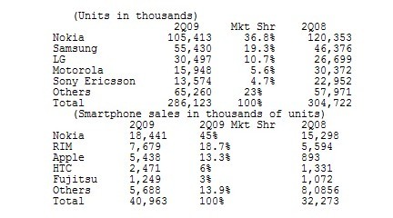 Gartner稱截至6月底的上一季度全球手機銷量為2.86億部,相比去年減少6.1%,相比上一季度減少9.4%——這是手機業曆史上最大幅度的下滑。