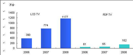 圖1 2006-2008年中國FPD TV市場年度規模增長