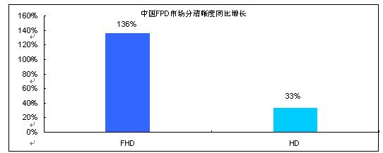 圖2 2009年1-4月中國FPD TV市場高清產品同比增長