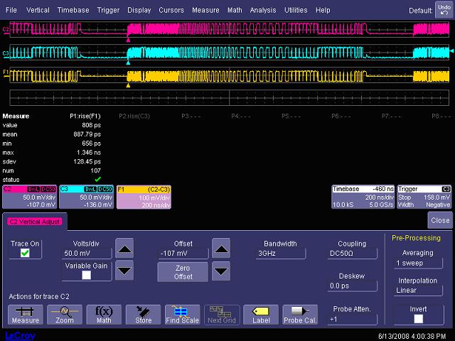 圖17,3GHz帶寬時測試USB2.0 high speed信號的上升時間
