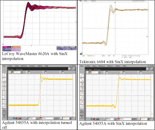 所有示波器在使用SinX內插時都展現很緊的餘輝曲線,與沒有內插時生成的餘輝曲線匹配。由於31 ps邊沿提供了示波器看到的任何邊沿中最大的頻率成分,這一結果表明對所有示波器,SinX內插在20 GS/s的最大采樣率時最有效,而不管應用的信號如何。