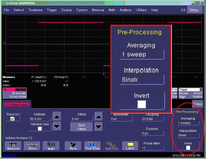 所有力科DSO都提供了SinX內插模式。在力科全係列X-Stream DSO上,可以通過通道設置菜單控製內插,每條通道支持不同的內插選擇。在以前的力科示波器型號上,則通過演算曲線提供SinX內插。