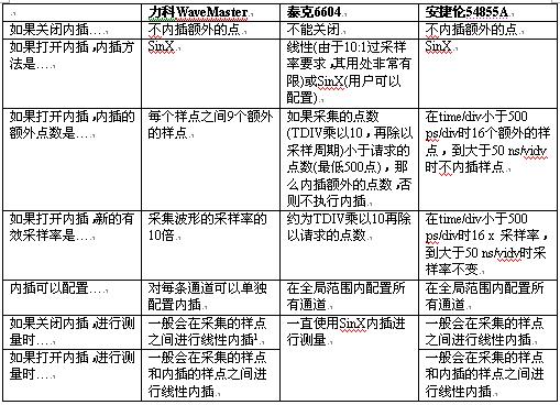 示波器之間的其它重要差異是內插規則。
