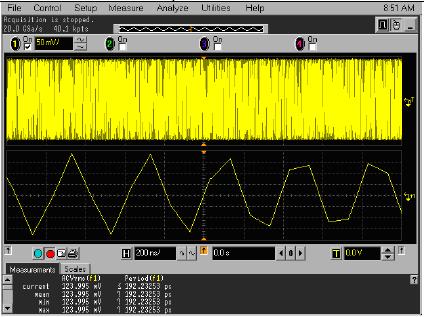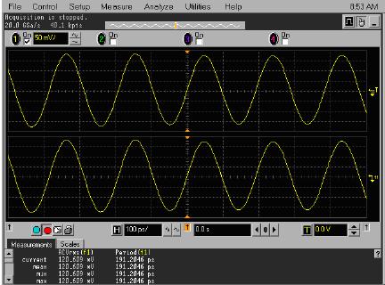 安捷倫允許關閉或打開SinX內插,允許在顯示模式中使用點或直線。與泰克一樣,安捷倫的判斷基於是否內插時基設置,在低於500 ps/div的時間/格設置時內插最多16個額外的點,在高於50 ns/div時(shi)不(bu)內(nei)插(cha)額(e)外(wai)的(de)點(dian)。如(ru)果(guo)顯(xian)示(shi)樣(yang)式(shi)選(xuan)擇(ze)直(zhi)線(xian),那(na)麼(me)將(jiang)在(zai)各(ge)點(dian)之(zhi)間(jian)劃(hua)直(zhi)線(xian),甚(shen)至(zhi)包(bao)括(kuo)內(nei)插(cha)的(de)點(dian)。這(zhe)與(yu)力(li)科(ke)實(shi)現(xian)方(fang)案(an)類(lei)似(si),但(dan)這(zhe)些(xie)直(zhi)線(xian)也(ye)出(chu)現(xian)在(zai)餘(yu)輝(hui)曲(qu)線(xian)中(zhong),力(li)科(ke)從(cong)不(bu)會(hui)把(ba)直(zhi)線(xian)放(fang)在(zai)餘(yu)輝(hui)曲(qu)線(xian)中(zhong)。