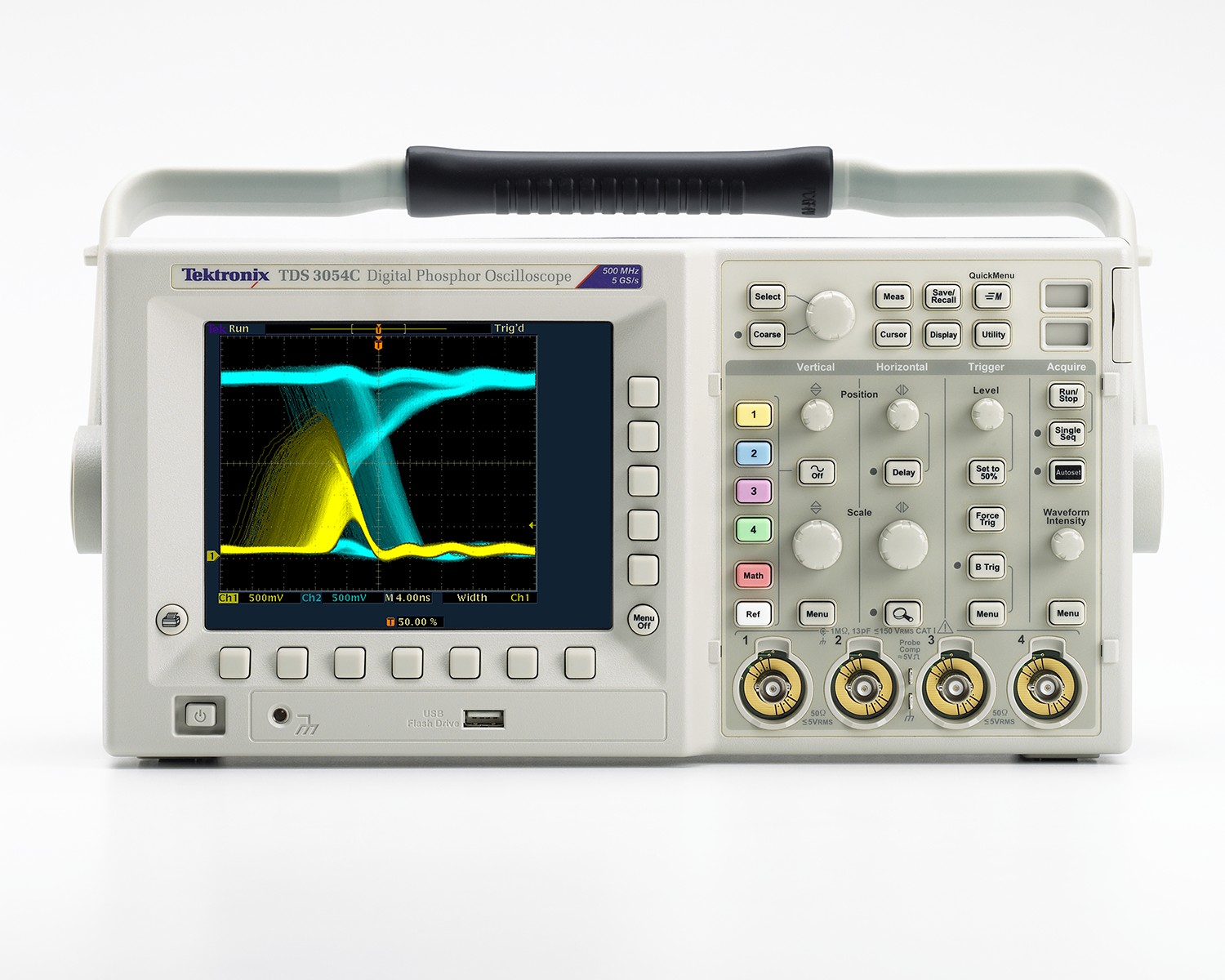TDS3000C示波器使得包括數字設計人員、製造商、服務和維修技術人員在內的各類用戶以經濟的價格獲得DPO的信號采集和分析功能。DPO技(ji)術(shu)每(mei)秒(miao)采(cai)集(ji)數(shu)千(qian)個(ge)波(bo)形(xing),並(bing)使(shi)用(yong)輝(hui)度(du)等(deng)級(ji)來(lai)表(biao)明(ming)信(xin)號(hao)事(shi)件(jian)的(de)發(fa)生(sheng)頻(pin)率(lv)。發(fa)生(sheng)頻(pin)次(ci)高(gao)的(de)事(shi)件(jian)亮(liang)度(du)要(yao)高(gao)於(yu)偶(ou)發(fa)事(shi)件(jian),因(yin)此(ci)可(ke)以(yi)輕(qing)鬆(song)區(qu)分(fen)毛(mao)刺(ci)、瞬態信號和調製。TDS3000C擁有全分辨率VGA顯示器,所以即使微小的細節也能清楚顯示。一旦用戶看到異常信號,他們可以使用高級毛刺觸發、欠幅脈衝觸發、脈衝觸發或轉換速率觸發功能,簡便地進一步查看信號。選配的軟件模塊提供了可擴充的解決方案,支持極限測試、高級通道數學運算、電信模板測試和HDTV視頻等應用。此外,TDS3000C包括e*Scope內置網頁服務器、WaveAlert異常波形自動檢測軟件和一個前麵板USB端口,可以把數據和儀器設置保存到記憶棒。