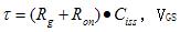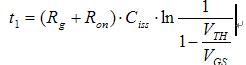VGS電壓從0增加到開啟閾值電壓VTH前,漏極沒有電流流過,時間t1為: