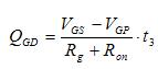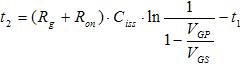 VGS電壓從VTH增加到米勒平台電壓VGP的時間t2為: