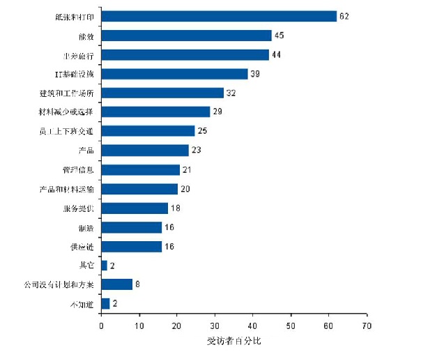 大多數企業都集中在相對容易、方便並熟悉的方麵來提高能效、減少溫室氣體排放,如在節約用紙,減少差旅及IT基礎設施上。這些舉措有時能解決企業的實質問題,有時卻不能解決實質問題。但本質上,這些舉措都與優先次序沒有多大關係。IT企業需在能效和減少溫室氣體排放方麵采取更為綜合的舉措。