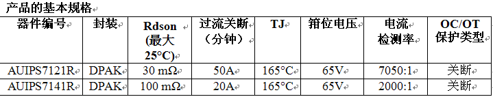 AUIPS7121R 和 AUIPS7141R 提供全麵的保護功能,確保開關安全可靠。此外,新器件的過流關斷、過溫關斷和有源箝位電路功能都能確保在重複短路的情況下實現安全運行和保護。