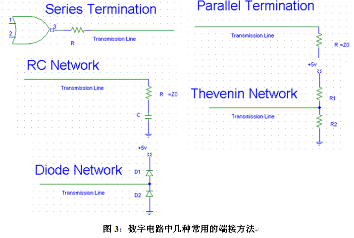 盡管並聯了100歐電阻後電路板能正常工作了,但是接收端測量到的峰峰值高達6.2V,對於SDRAM芯片3.3Vdegongzuodianyalaijianghaishibijiaodade,changqigongzuokenenghuidaozhineicunxinpianchuwenti,suoyi,womenhaixugaijinduanjiecelve。zaixinhaowanzhengxingshujizhong,tongchangyouchuanlianpipei、並聯匹配、RC網絡、戴維南網絡等端接方法,如下圖3所示。相比並聯匹配,串聯匹配不用提供DC電流到地或者電源,不會對輸出的高低電平產生影響,能減小過衝和EMI,所以我們接著嚐試串聯匹配下的信號質量。