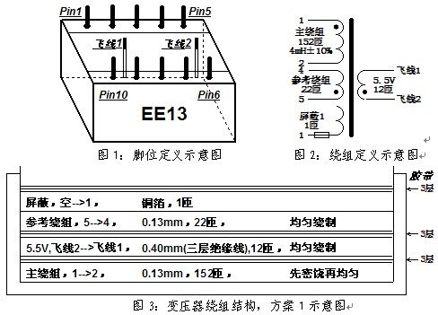 注:主繞組電感,4mH±10% ;飛線1、飛線2線頭長15mm,並有5mm浸錫;
