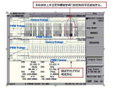 接著再次迅速提高盤式液壓,通過ABSchuandongzhuangzhizengjiazhidongli。huanjuhuashuo,ketongguozengjianpanshiyeyafangzhizhidongqibeisuoshang。zengjiapanshiyeyayejiushiyongbengjiangyetiyaruqigang,huishibengmadaxunsugongzuo。zhegekuaisudemadajiangyingxiangkongzhiluoxuanguanfamendePWM電流信號。一般ABS操作無法得到這是否影響電池電壓波動。因此,有必要觀察這個電池電壓波動。