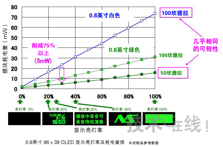 此次開發的有機EL麵板的耗電量“與配備LED背照燈的液晶麵板相當”。日本精機首先試製了0.8英寸的綠色麵板,與該公司原來同尺寸麵板相比,“可視性幾乎相同,耗電量削減了75%”(日本精機)。該公司計劃利用此次的有機EL麵板低耗電技術,推動有機EL麵板的普及。