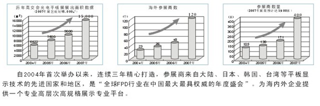 ●作為FPD “中國最大”的行業盛會,FPD EXPO 2010將以“打造產業配套”為主軸,“全球FPD行業在中國最具權威的年度盛會”為方向,參展商將來自大陸、日本、韓國、台灣等平麵顯示技術的先進國家和地區。