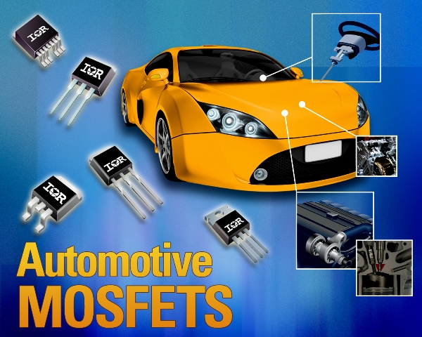 國際整流器公司 (International Rectifier,簡稱IR) 推出首款汽車專用 MOSFET 係列,適用於需要低導通電阻的各種應用,包括電動助力轉向係統 (EPS) 、集成式起動發電機 (ISA) 泵和電機控製、DC-DC 轉換、電池開關,以及內燃機 (ICE) 和混合動力汽車平台的其它重載應用。