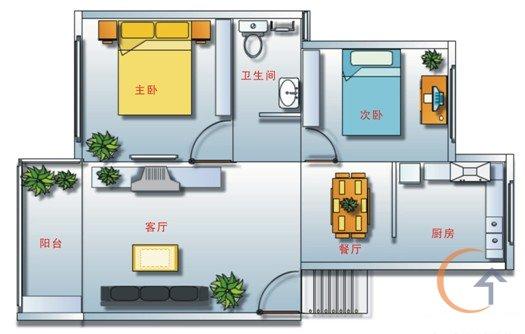 本項目為一套2室2廳,室內建築格局為:客廳、餐廳、廚房、次臥、主臥、衛生間、陽台,如圖1所示:
