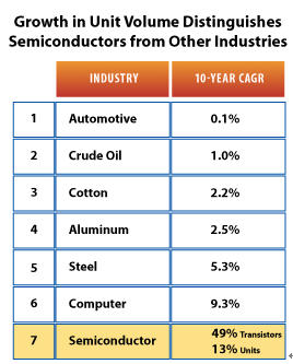 半導體業在數量上的增長與其它工業不同