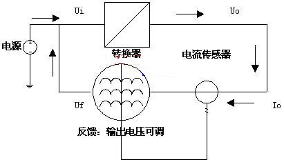 zainengliangfankuibufenjiuyaonengshixianshangshuyaoqiu,baozhengwendingdediannengzhuanhuanqideshuchudianliu,caiyongdianliuchuanganqijiancediannengzhuanhuanqideshuchudianliu,tongshifankuibufencaiyongfankuidianyayushuchukongzhidianliuzhijianchengfanbixishuguanxijiUf∝K/Io,為便於分析,設電源電壓Ui為穩定值。當輸出電流較小時,通過調節反饋電壓,使其變大,則反饋電壓與輸入的電壓差△U=Uf-Ui變大,相應的由反饋電壓流向輸入電壓的電流加大,造成相應的反饋功率加大;當輸出電流較大時,通過調節反饋電壓,使Uf變小,則反饋電壓與輸入的電壓差△U變小,相應的由反饋電壓流向輸入電壓的電流減小,造成循環的功率減小;整個過程維持負反饋控製,最終達到動態平衡,維持設定的額定功率。
