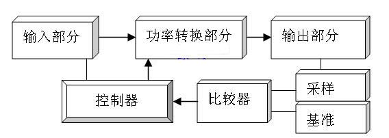 從以上能量反饋係統工作分析可知,能量反饋部分為係統穩定工作提供必要的保證,能量反饋部分組成可由圖5所示,主要包括:輸入部分、功率轉換部分、輸出部分、采樣、基準、比較器和控製器七個組成部分。