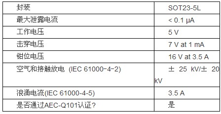 新的保護陣列在0V時具有16pF的低容值,在5V工作電壓下的泄漏電流小於0.1μA。器件使用廣為采用的SOT23-5L封裝,在生產過程中很容易進行處理,0.7mm的超薄厚度可節省電路板空間。