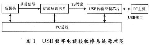 USB數字電視接收棒係統主要有以下4個模塊構成,如圖1為係統的原理圖。