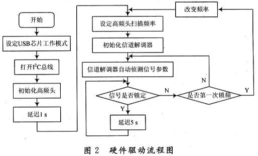 (3)USB傳輸控製模塊:該模塊作為主控模塊,加載相應的驅動程序後,通過I2C總線完成對高頻頭和信道解調器的初始化和後續控製,並將TS碼流傳輸至PC機端。
