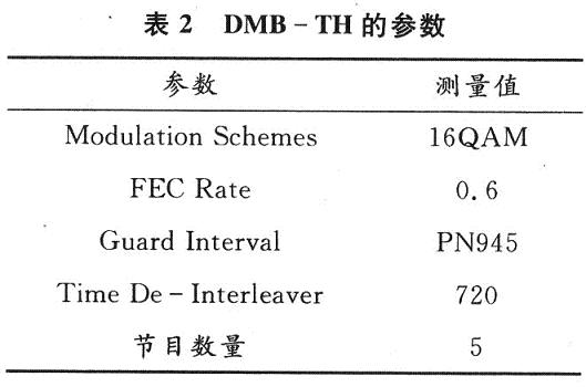 在完成了USB數shu字zi電dian視shi接jie收shou棒bang的de係xi統tong總zong體ti方fang案an設she計ji之zhi後hou,根gen據ju所suo選xuan用yong的de芯xin片pian,參can照zhao相xiang應ying技ji術shu手shou冊ce,設she計ji了le電dian路lu原yuan理li圖tu並bing製zhi作zuo了le印yin刷shua電dian路lu板ban。在zai硬ying件jian製zhi作zuo期qi間jian,同tong時shi進jin行xing軟ruan件jian的de開kai發fa工gong作zuo。在zai硬ying件jian製zhi作zuo完wan成cheng後hou,利li用yongKEILC和VC6++進行了調試。利用筆記本電腦在室內和運動狀態下分別進行了長時間(12h)測試,USB端口接收數據的速度穩定在1.8MB/s。測得廈門地區國標DMB-TH數字電視的參數見表2。